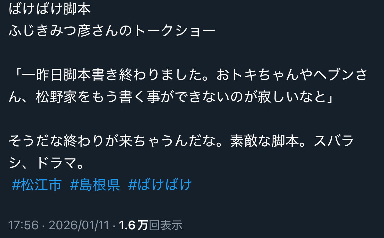 ばけばけスレ上限1000レスに達しました