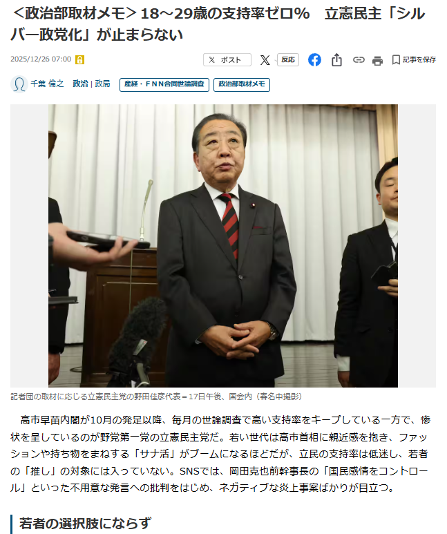 | … | 46無念Nameとしあき26/01/12(月)12:40:47No.1379624787そうだねx1でも左翼政党が伸びる見込みはないので |