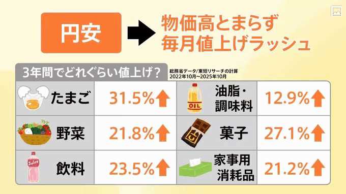 | … | 141無念Nameとしあき26/01/13(火)11:21:19No.1379840871+生活必需品や食料品にエネルギーなど |