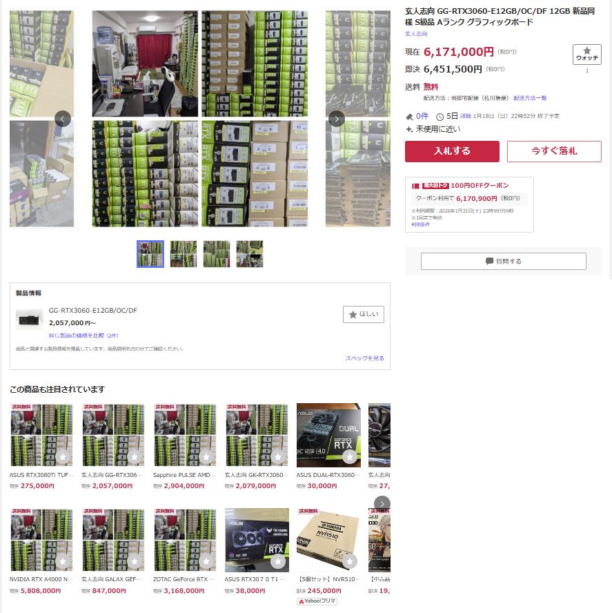 | … | 95無念Nameとしあき26/01/13(火)10:01:58No.1379832233+>66台で600万だから3060を1台9万円で見てるんだよな |