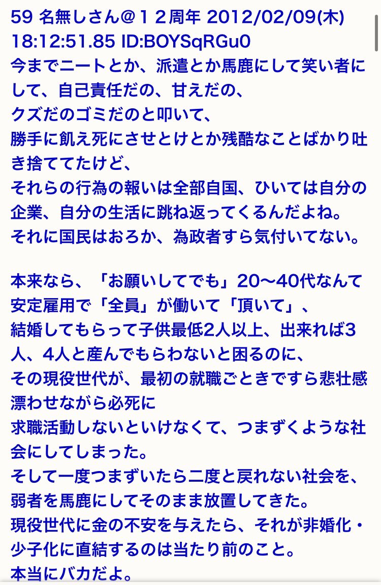 | … | 20無念Nameとしあき26/01/14(水)03:20:44No.1380014272そうだねx1国も国民も子供を産むことを望んでないからな |