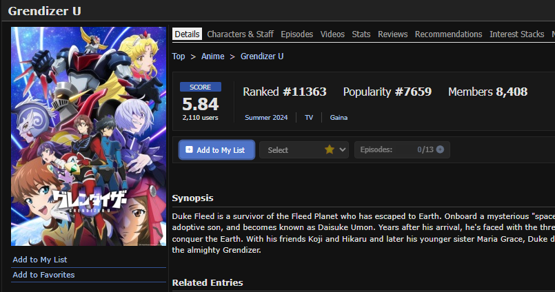 | … | 13無念Nameとしあき26/01/14(水)07:31:09No.1380022196+グレンダイザーじゃなくてもできる内容だった |