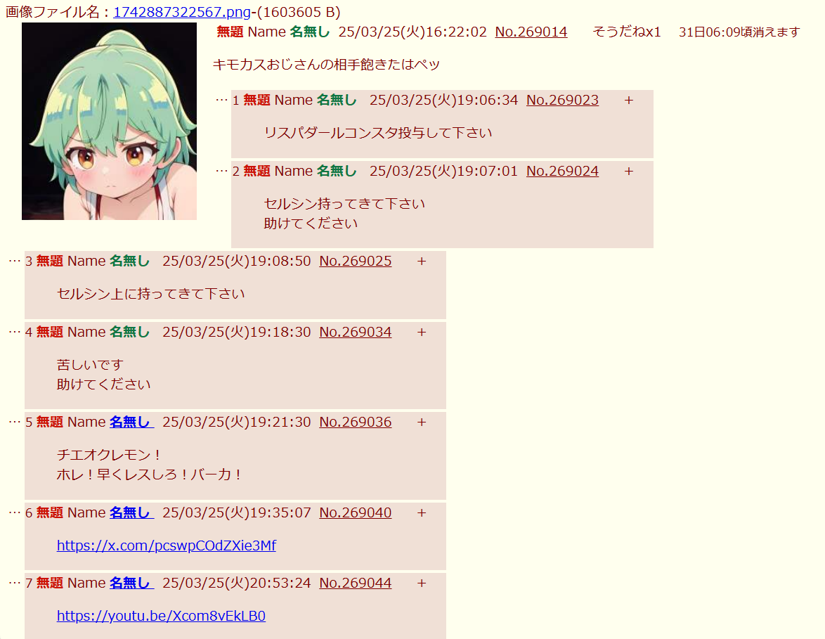 | … | 109無念Nameとしあき26/01/14(水)07:42:30No.1380022959そうだねx1言っとくけど5分以内にレスなかったら糖質の負けだからね |