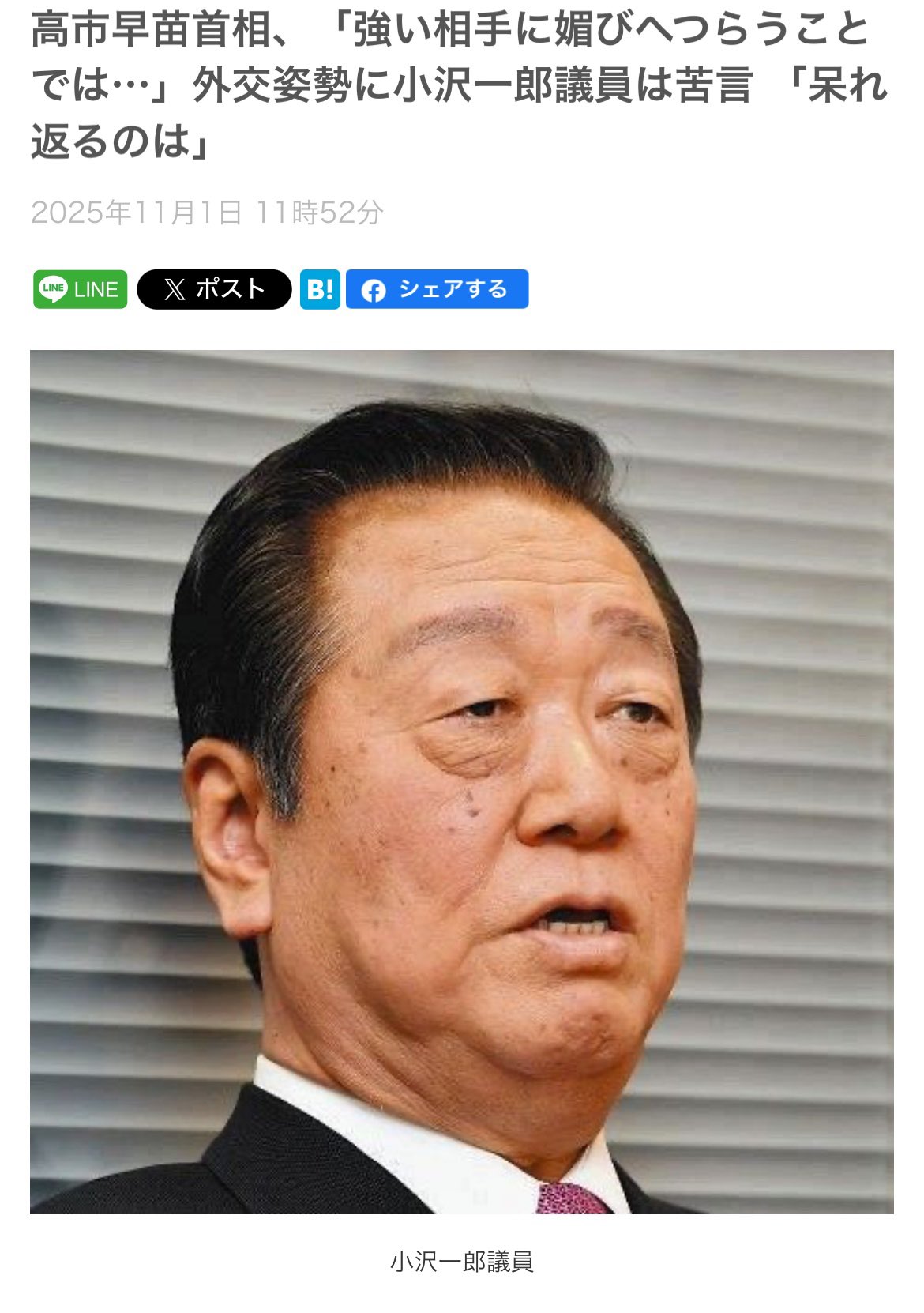 | … | 13無念Nameとしあき26/01/14(水)08:22:34No.1380026204そうだねx2小沢の事務所「これ野獣ブラインドじゃないですか 小沢先生に対して今以上に変なイメージが付くので写真を変えて下さい」 |