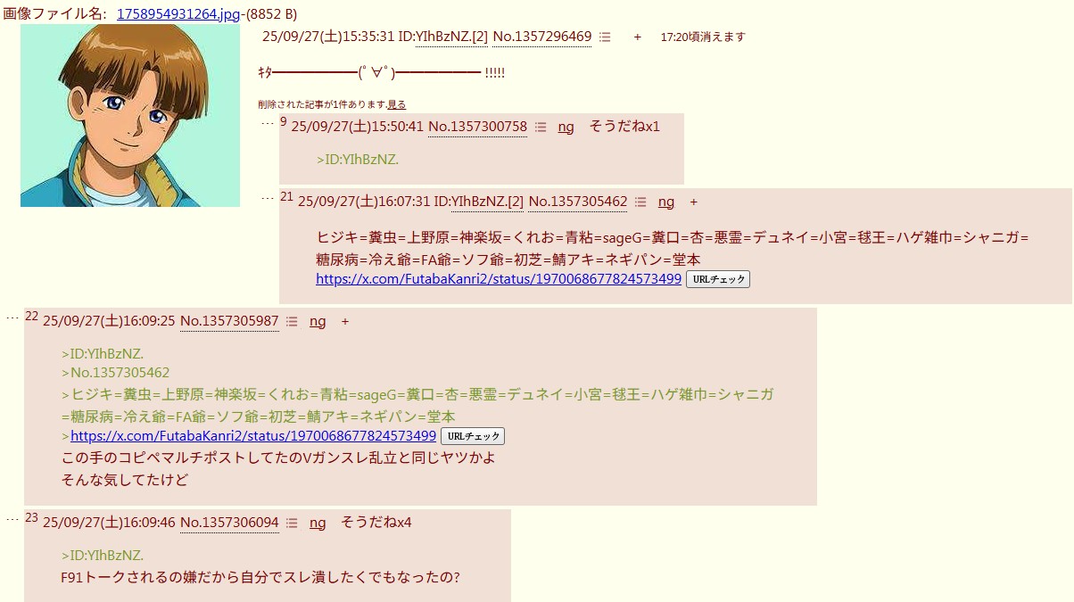 | … | 48無念Nameとしあき26/01/14(水)10:16:20No.1380037541そうだねx6おっとF91・V粘着が来ましたよっと |
