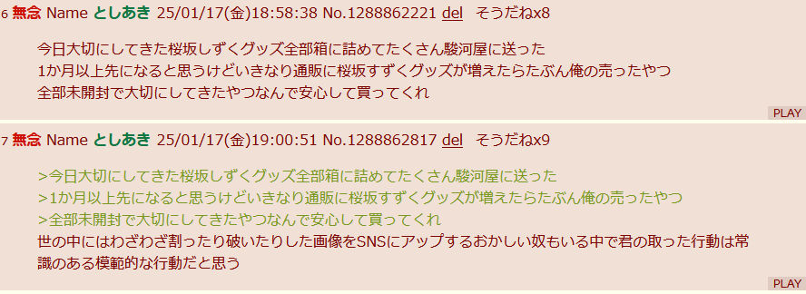 | … | 78無念Nameとしあき26/01/14(水)19:26:48No.1380126297そうだねx8>グッズ破壊して喜んでるような奴らだから馬鹿にされてもしょうがなくねーか |