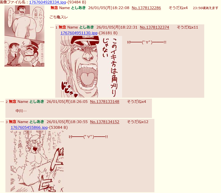 | … | 16無念Nameとしあき26/01/14(水)23:18:36No.1380189761そうだねx3中川→両津→部長 |