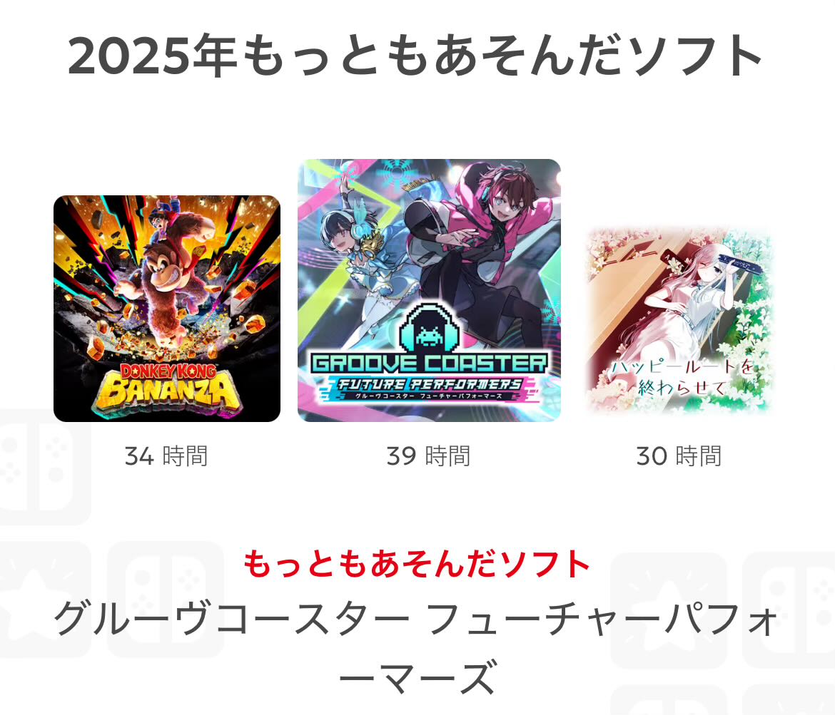 | … | 2無念Nameとしあき26/01/14(水)23:58:55 ID:oUIfMBUwNo.1380198619そうだねx2 1768402735572.jpg-(136367 B) Nintendo Switch 2025年の振り返り |