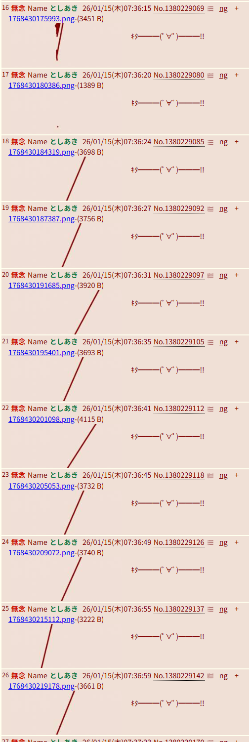 | … | 55無念Nameとしあき26/01/15(木)08:52:37No.1380236548+画像連貼りってスクリプトでやってんの? |