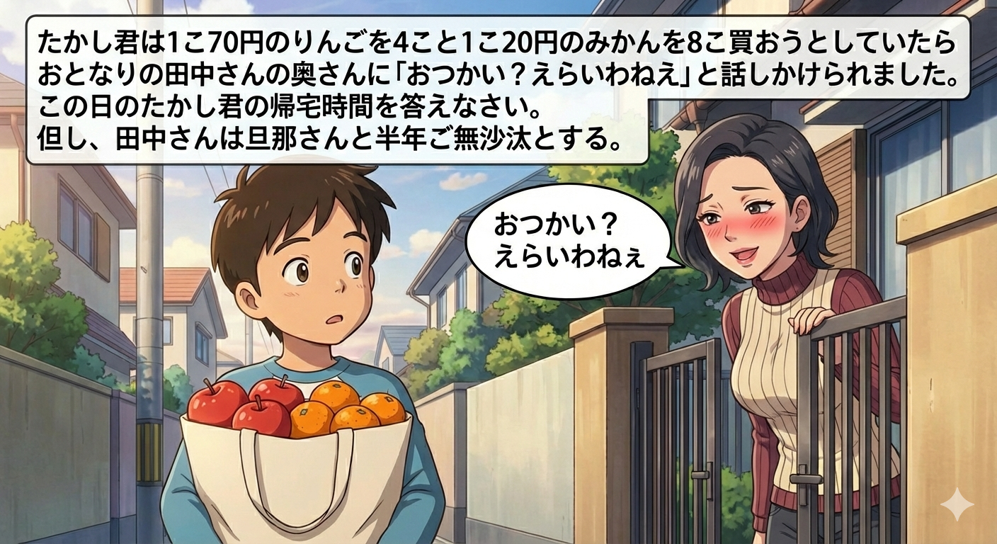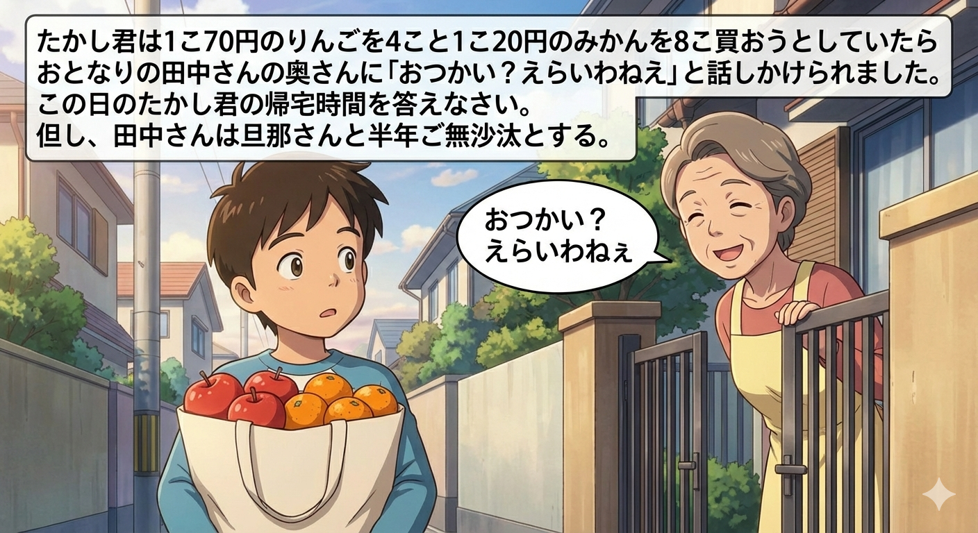 | … | 64無念Nameとしあき26/01/15(木)11:53:57 ID:7BobIfWANo.1380257865そうだねx3>>たかし君は1こ70円のりんごを4こと |