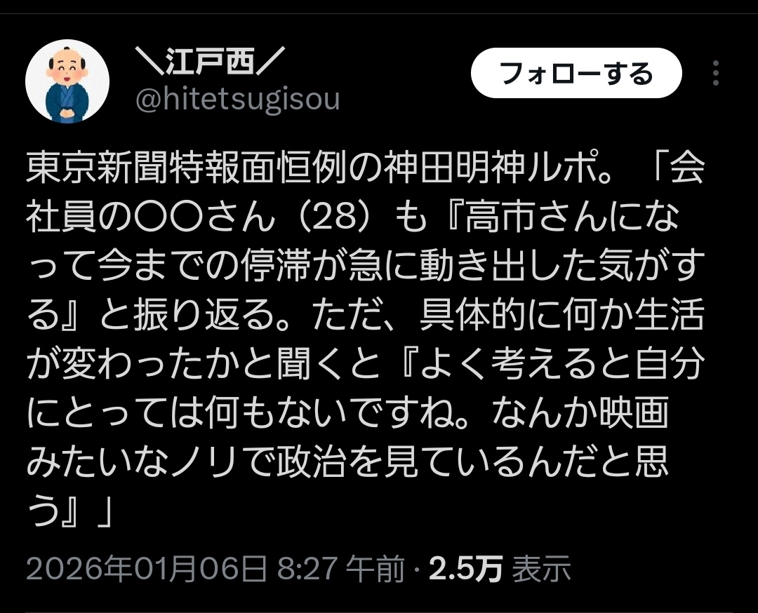 | … | 8無念Nameとしあき26/01/15(木)09:27:08No.1380240000そうだねx2ウヨはろくなやついないな |