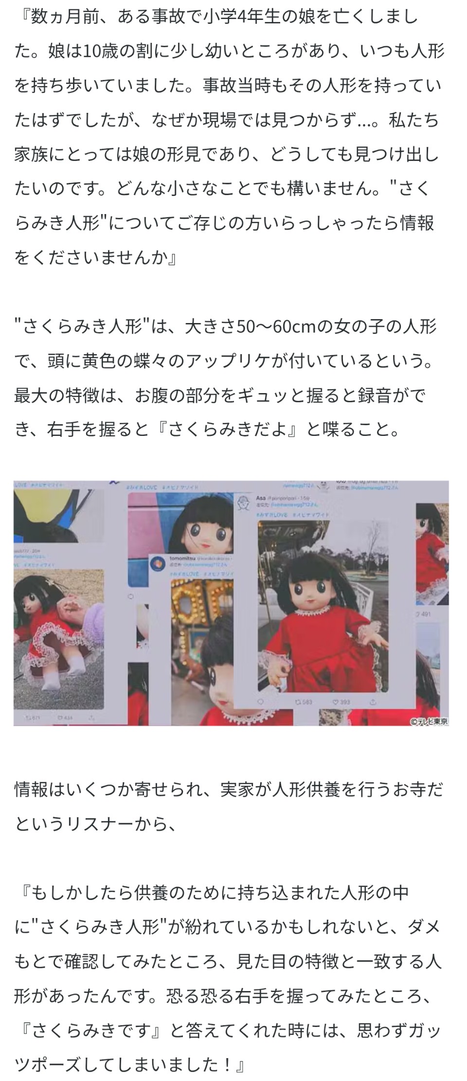 | … | 8無念Nameとしあき26/01/15(木)12:32:50No.1380264822そうだねx7>>>さくらみきだよと喋る人形 |