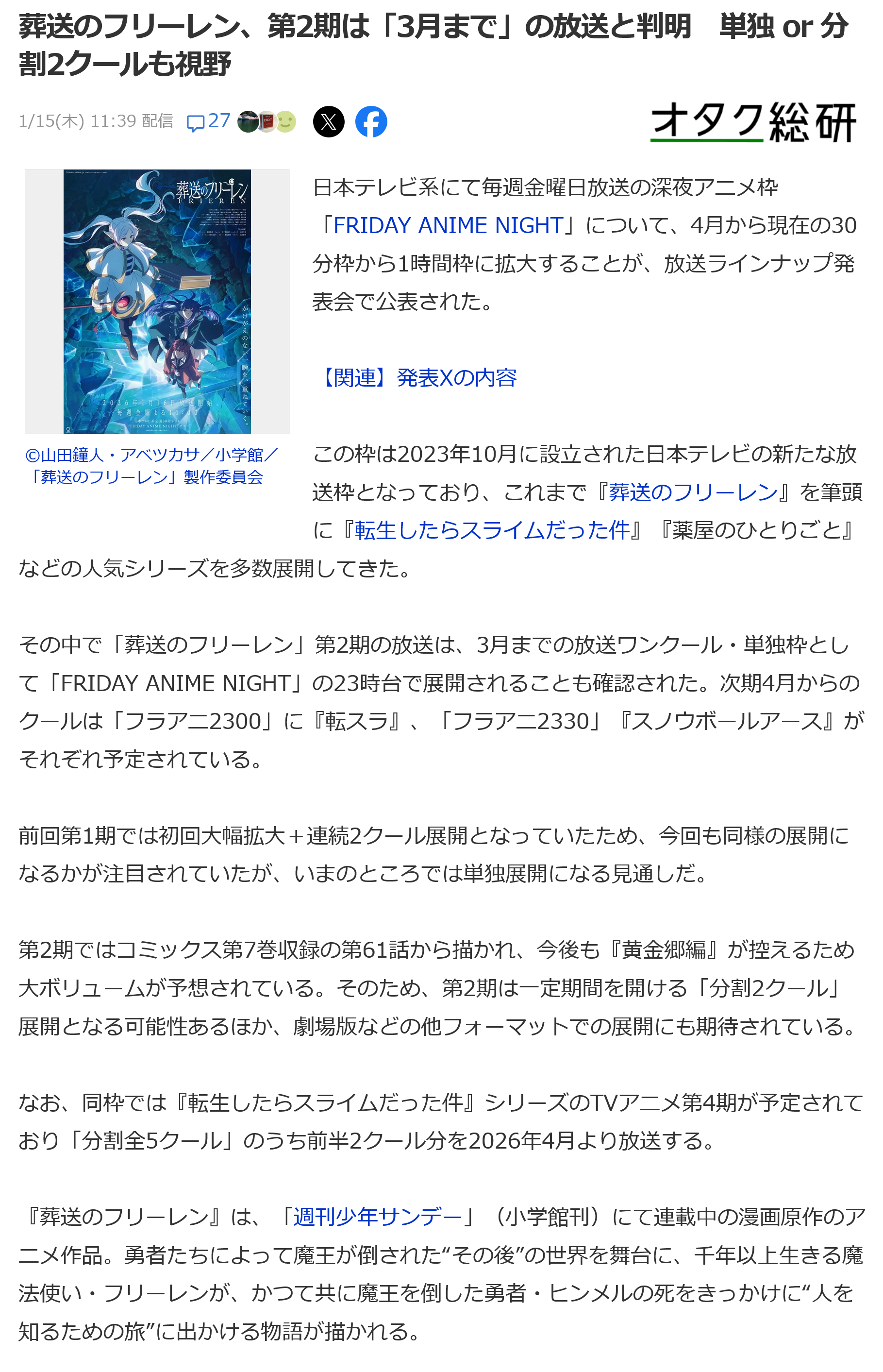 | … | 34無念Nameとしあき26/01/15(木)18:36:06No.1380331364+赤坂アカ作品はまあまだギリ集英社だから許せるけどフリーレンは小学館だからダメだろ…(´・ω・`)←愚かなるマネモブに苦言を呈する善良にして賢きボンくん |