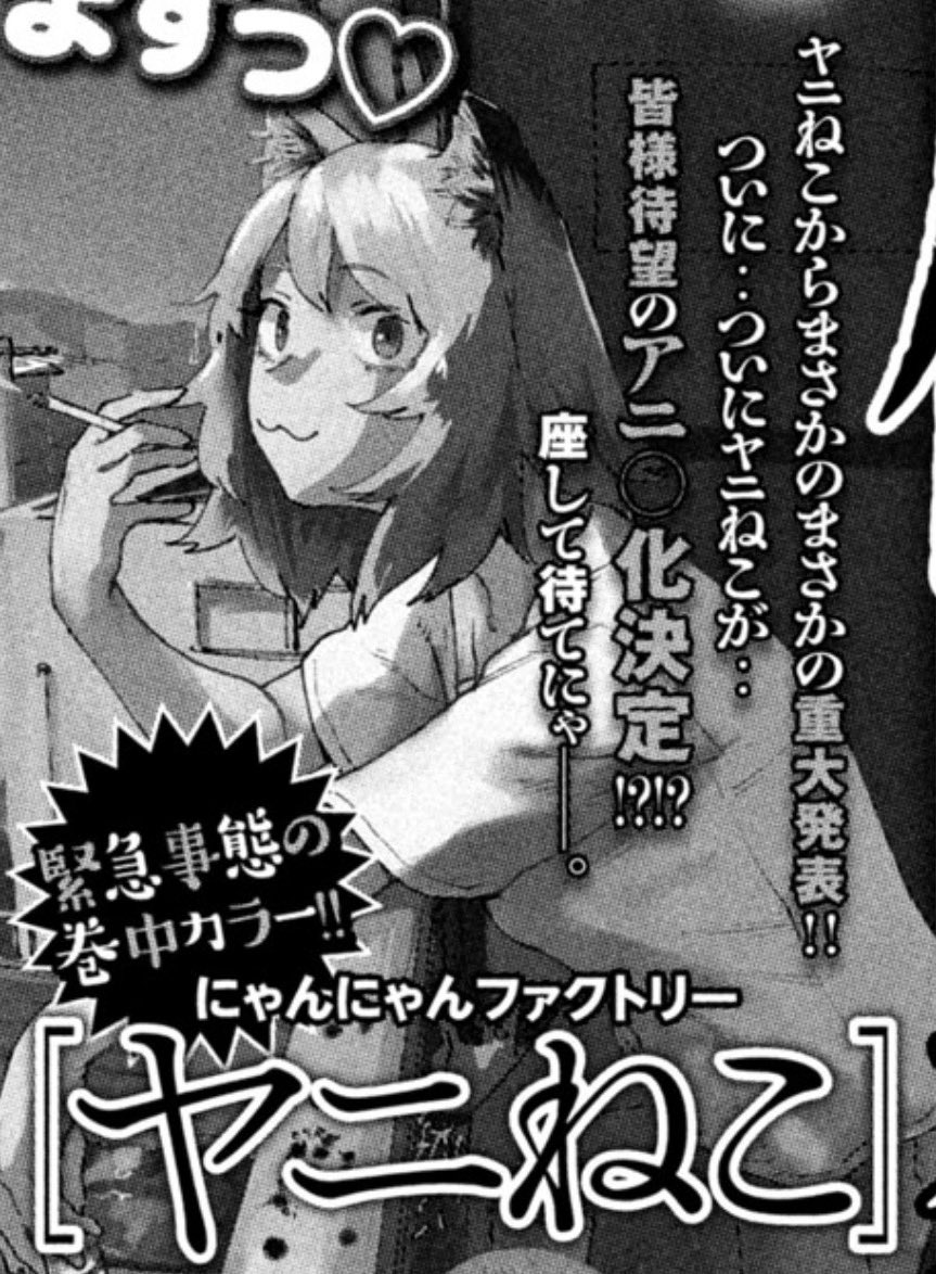 | … | 50無念Nameとしあき26/01/16(金)00:31:05No.1380426778+>アニメ化したらヤクネコの登場シーン全部自主規制シール貼って黒塗りにしないとならんからなぁ |