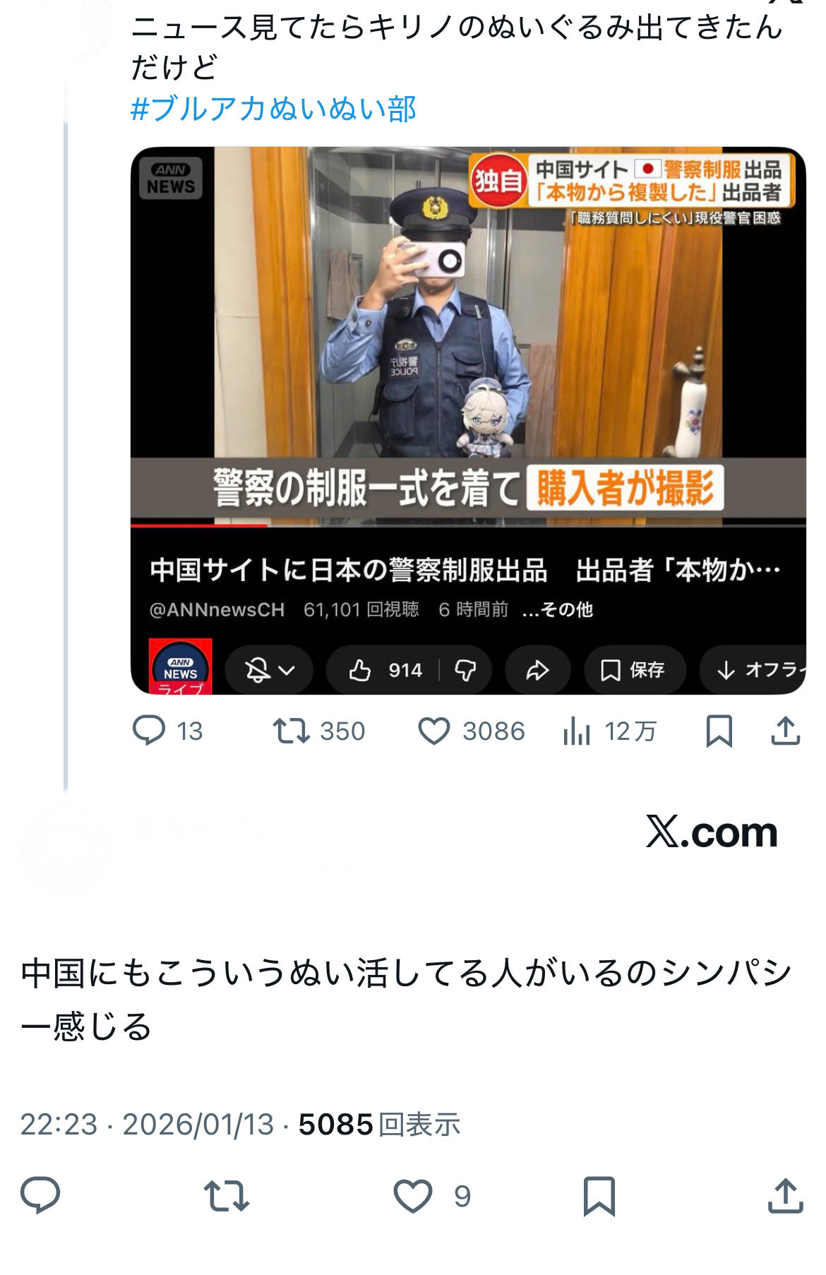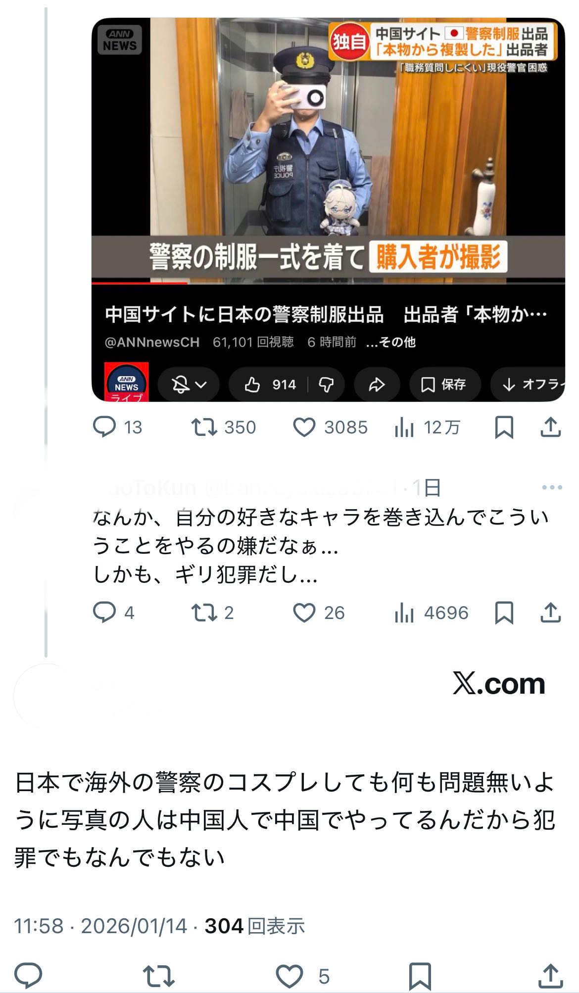 | … | 44無念Nameとしあき26/01/16(金)14:25:42No.1380508924そうだねx11 1768541142973.jpg-(260215 B) ぬいぐるみを巻き込んだ不快感より犯罪者のほうを擁護するせんせぇには参るね |