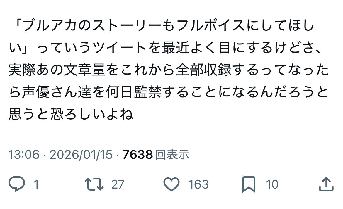 | … | 59無念Nameとしあき26/01/16(金)14:30:18No.1380509672そうだねx12声優のギャラってアフレコした台詞の量で決まるんでしょ |