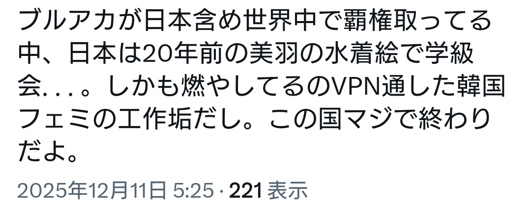 | … | 78無念Nameとしあき26/01/16(金)14:36:02No.1380510547+ 1768541762354.png-(165493 B) ブルアカは世界中で覇権取ってるからな |