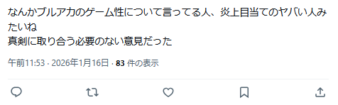 | … | 75無念Nameとしあき26/01/16(金)14:35:26No.1380510446+ 1768541726458.png-(156650 B) キャラの押し付けをしないブルアカを見習え! |