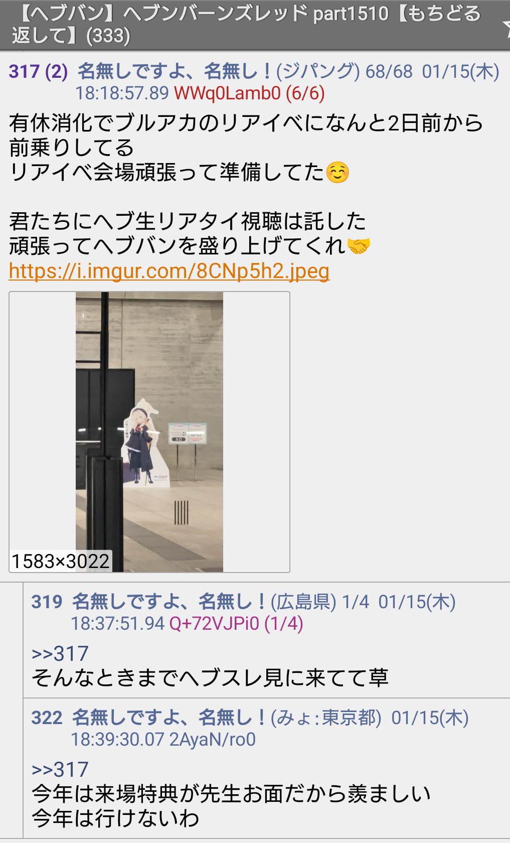 | … | 13無念Nameとしあき26/01/16(金)14:02:20No.1380505356そうだねx3>明日のフェスで2期発表祈願 |