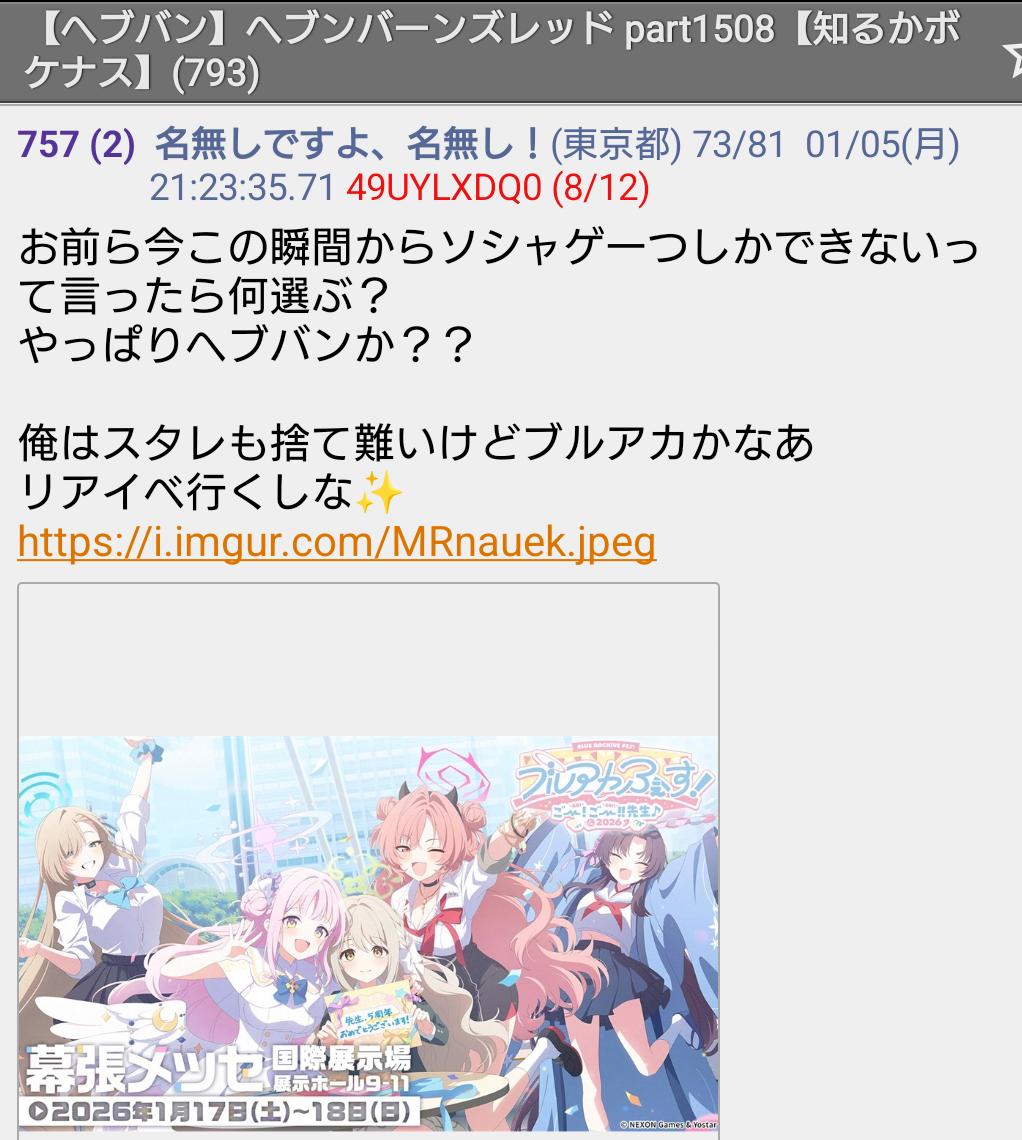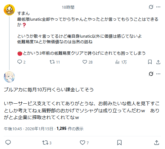 | … | 92無念Nameとしあき26/01/16(金)14:38:48No.1380510999そうだねx9 1768541928027.jpg-(866885 B) >ブルアカは世界中で覇権取ってるからな |