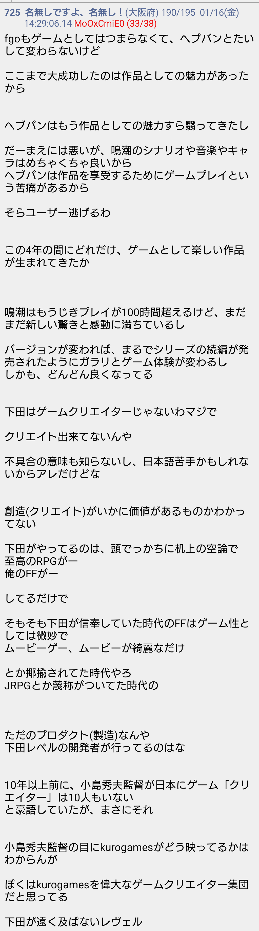 | … | 595無念Nameとしあき26/01/16(金)17:51:54No.1380542531そうだねx4中韓作品の信者ってだいたい国産を荒らしまくっているのに被害者ヅラしているのなんなんだよ |