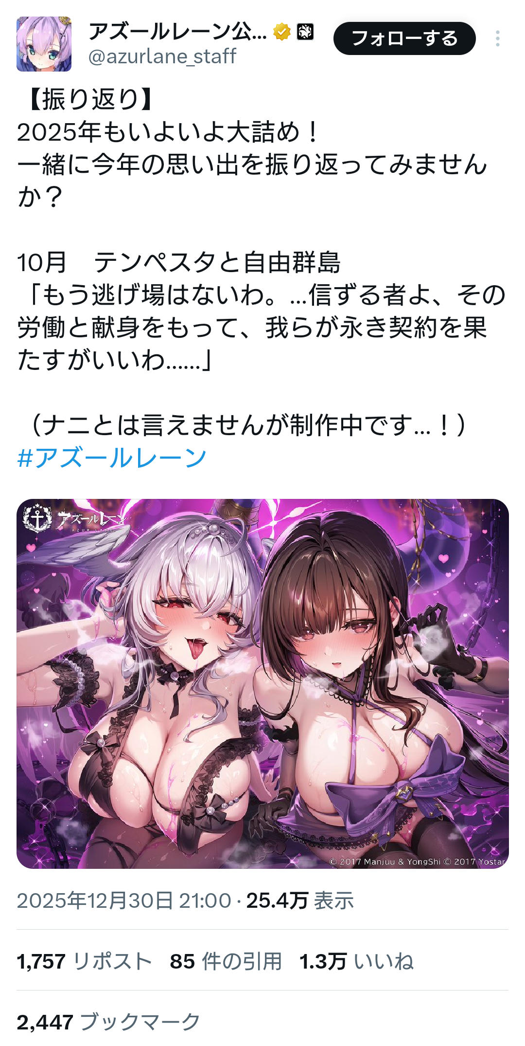 | … | 523無念Nameとしあき26/01/16(金)17:30:52No.1380538662そうだねx9>アズレン界隈は少しでも批判すると守護者がかっ飛んできて提督のレッテル貼られる監視社会わよ |