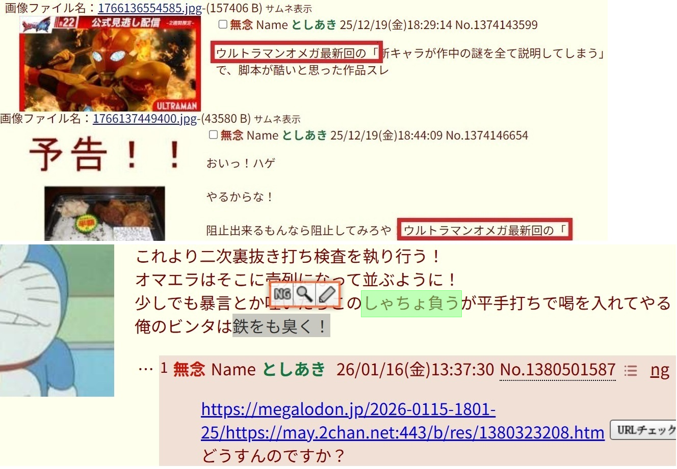 | … | 4無念Nameとしあき26/01/16(金)14:33:22No.1380510146そうだねx3いもげにまでクソスレ立てんなゴミ |