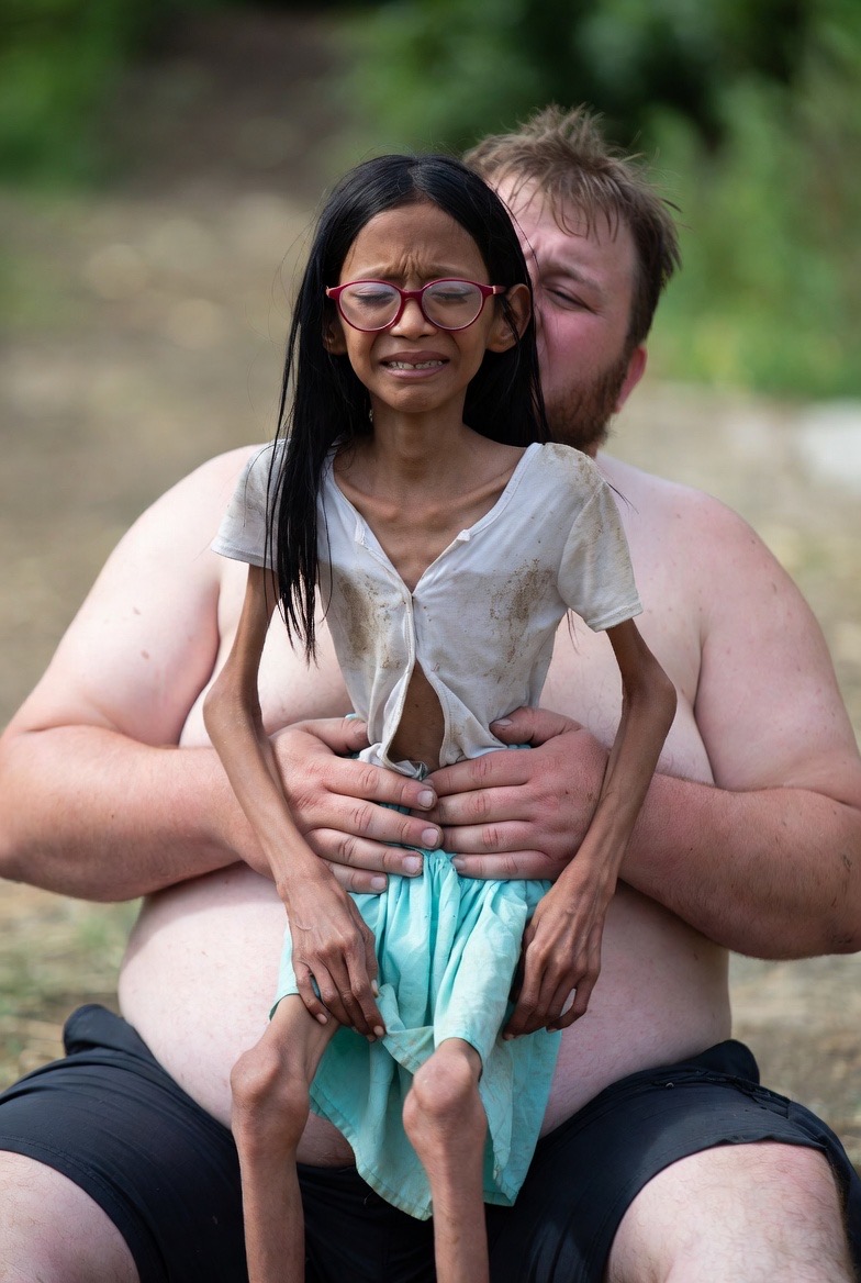 | … | 34無念Nameとしあき26/01/16(金)15:38:56No.1380520603+ 1768545536706.jpg-(187656 B) 腕と脚が短く、とても華奢な体つき、ネグレクトから救出されたばかりで、発育も不良で痩せ細り、身長も低いまま、黒髪ストレートロング、赤いフレームのメガネ、汚れた白いシャツと水色のスカートの少女、保護した太った男性の腰の上に座り、安堵の涙を流して泣きじゃくっている、男性は少女が心細くないように腰を優しく抱き止める、 |