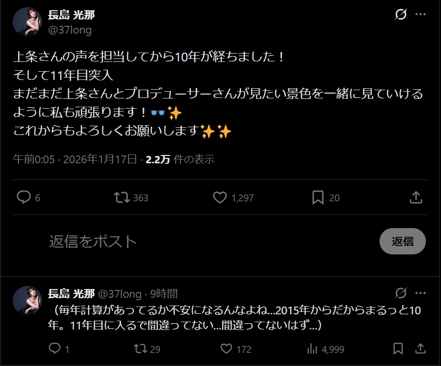 | … | 24無念Nameとしあき26/01/17(土)08:42:38 ID:JDEcHlN2No.1380684249+(時期によって配属先が変わる藤原肇)にゃあ |