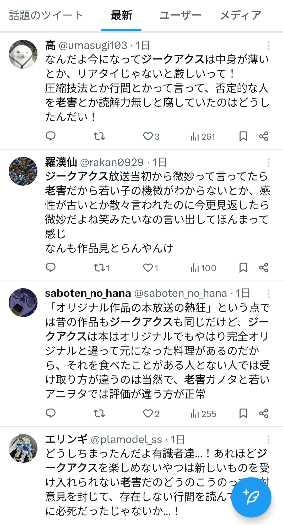 | … | 953無念Nameとしあき26/01/17(土)13:28:00No.1380737430そうだねx1>ジークアクス好きの普通に語るって批判意見にお前は頭が悪いって言い続けることだよな |