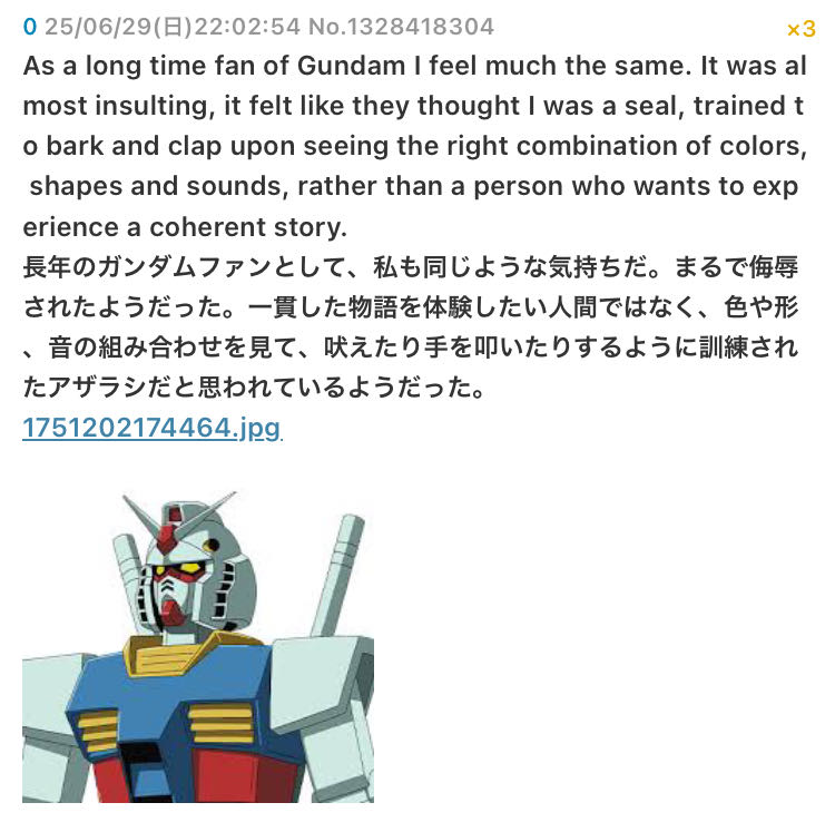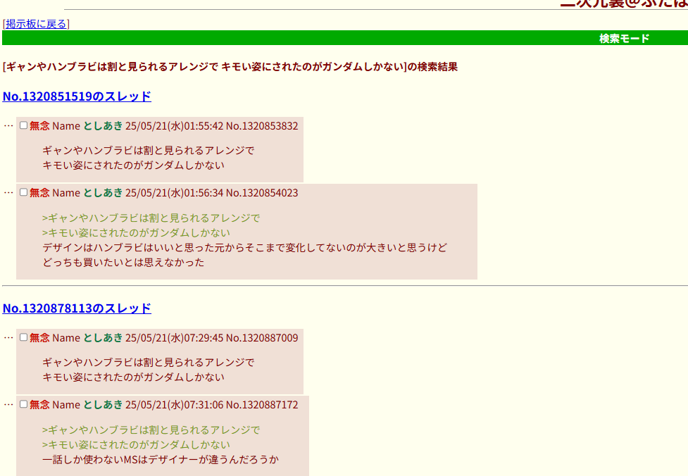 | … | 30無念Nameとしあき26/01/17(土)09:40:28No.1380692802+実況向けガンダム |