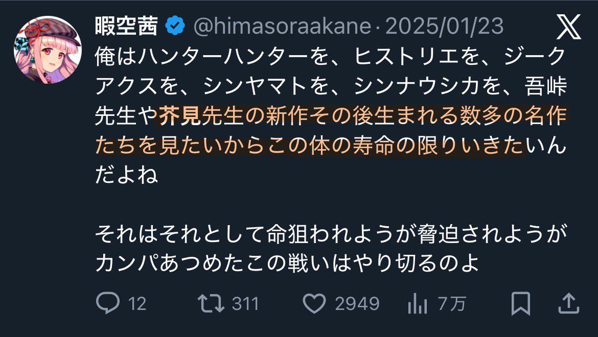 | … | 29無念Nameとしあき26/01/17(土)09:40:19No.1380692779そうだねx2>むしろSNSで瞬間瞬間楽しんでる層とか全然金出さない層でしょうに… |