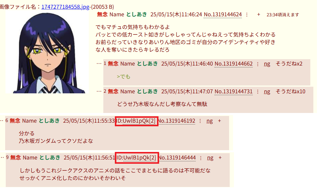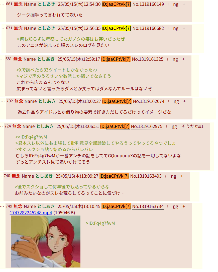 | … | 968無念Nameとしあき26/01/17(土)13:29:19No.1380737740+>ジークアクス好きの普通に語るって批判意見にお前は頭が悪いって言い続けることだよな |