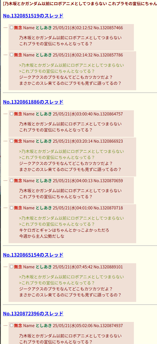 | … | 93無念Nameとしあき26/01/17(土)10:25:07No.1380700199そうだねx4その場のノリで作られたの乃木坂ガンダムが好きな人もいるんですよ!?バカにするのはやめて下さい!! |