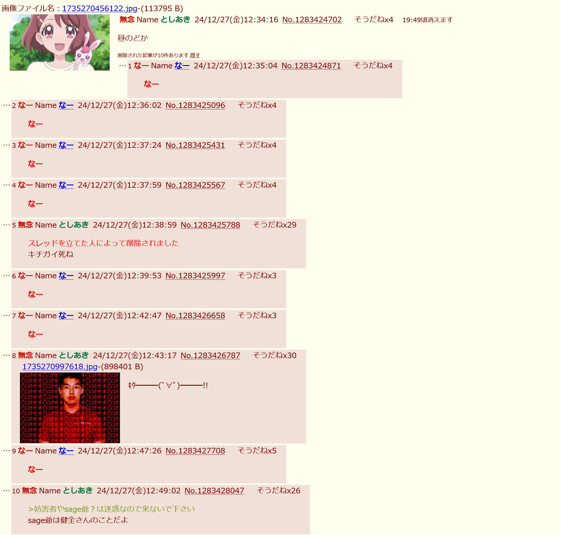 | … | 23無念Nameとしあき26/01/17(土)12:36:46No.1380726122+書き込みをした人によって削除されました |