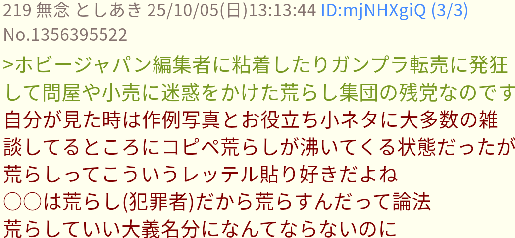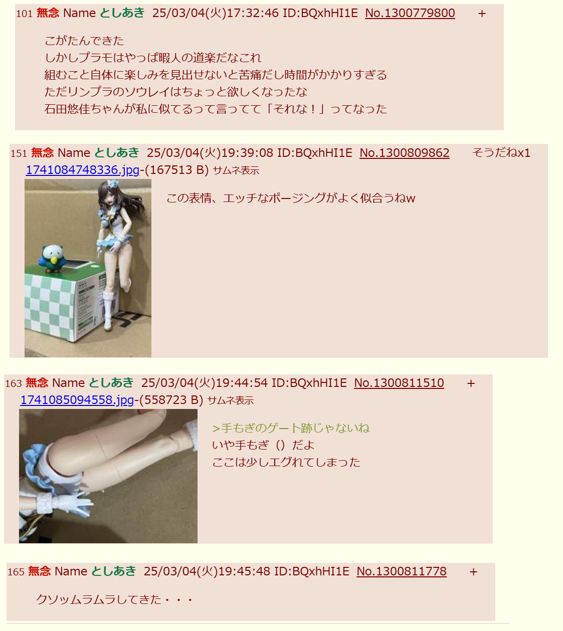 | … | 682無念Nameとしあき26/01/17(土)21:13:47No.1380848023そうだねx3>出来の悪いプラモの話をするのの何が問題あるの? |