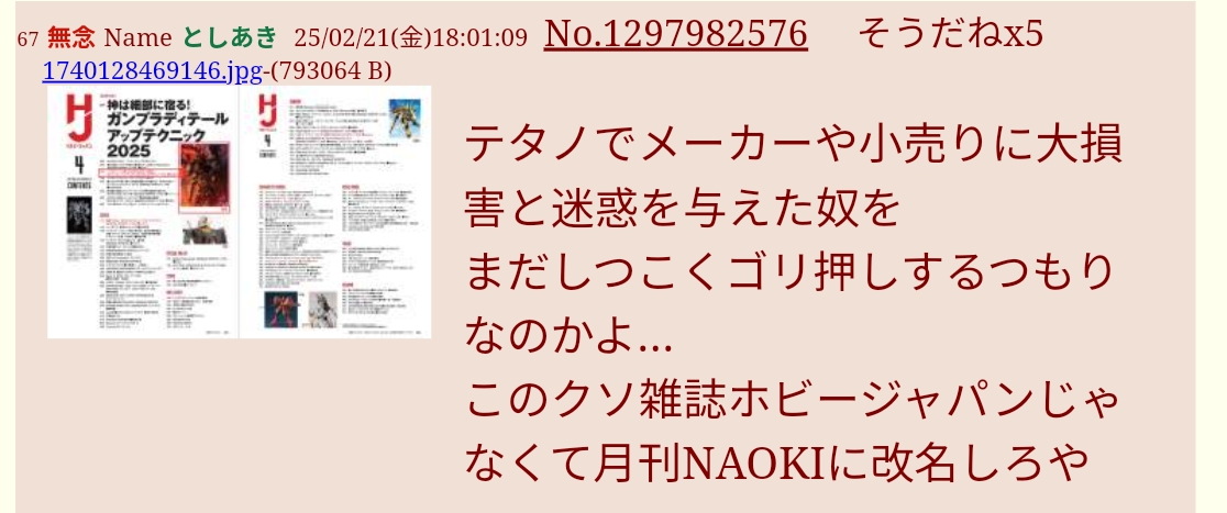 | … | 690無念Nameとしあき26/01/17(土)21:19:18No.1380849731+>スレ画のプラモの話題が丸ごとNGになった理由は |