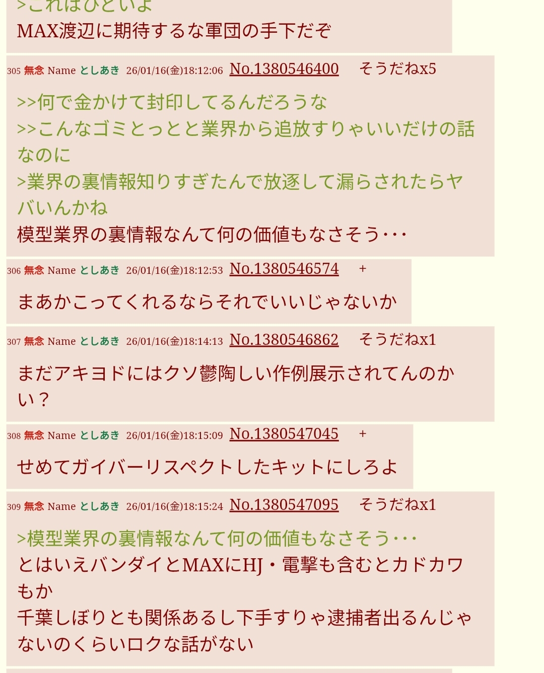 | … | 75無念Nameとしあき26/01/17(土)17:27:14No.1380785622+>吉本興業がプラモとかにまで蔓延ってきて本当に不快 |