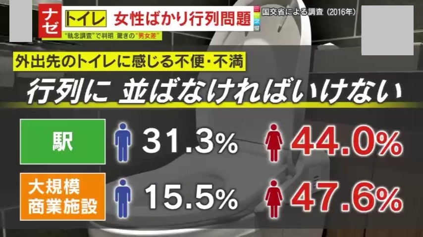 男女トイレ差別問題深刻に