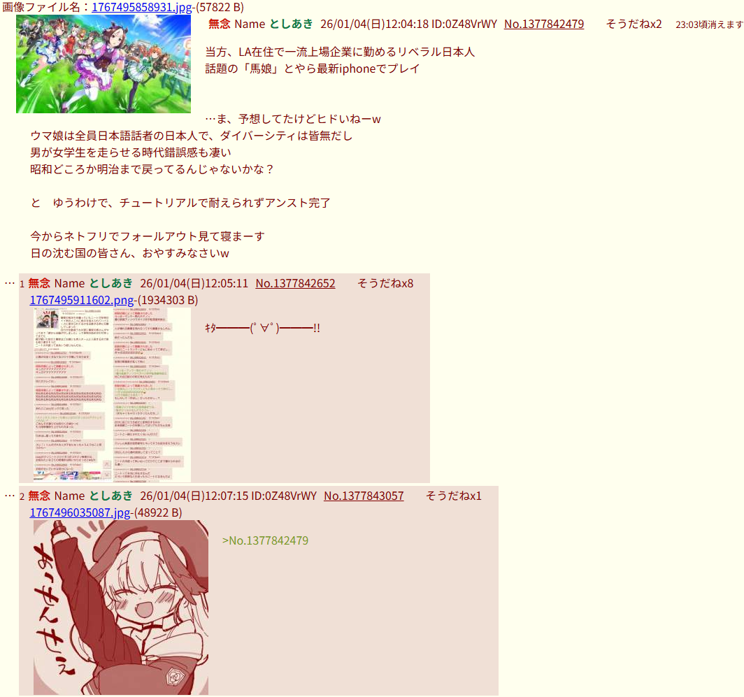 | … | 1無念Nameとしあき26/01/17(土)22:00:43No.1380862830+ふたばも対戦型ソシャゲみたいなもんか |