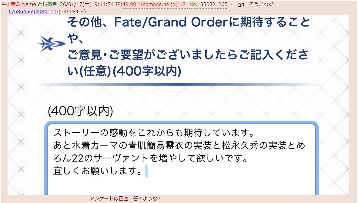 FGO雑談スレこのスレの書き込みはIPアドレスが表示されます。