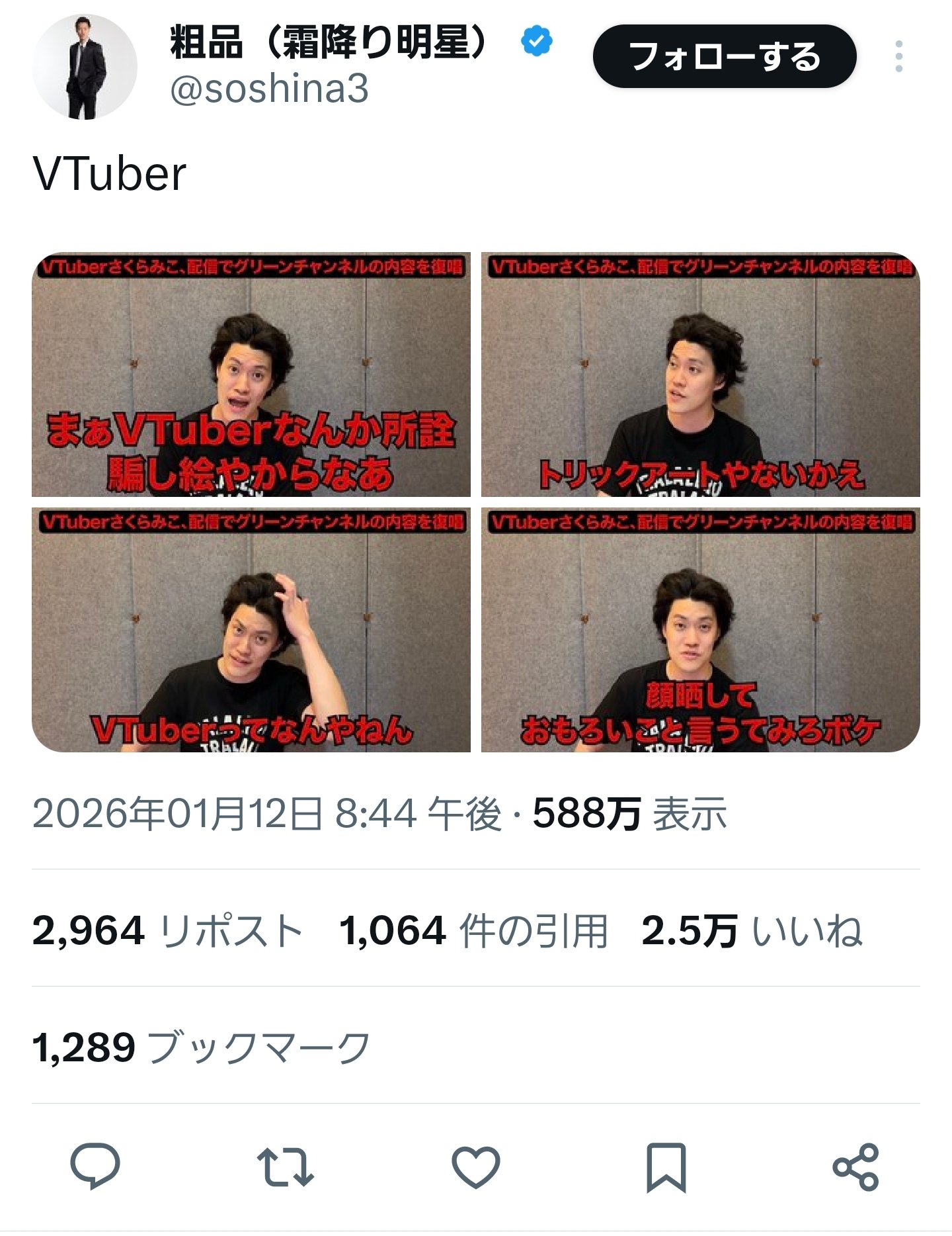 | … | 53無念Nameとしあき26/01/18(日)10:30:12No.1380965494+ 1768699812800.jpg-(130325 B) 粗品がV豚なわけないだろ |
