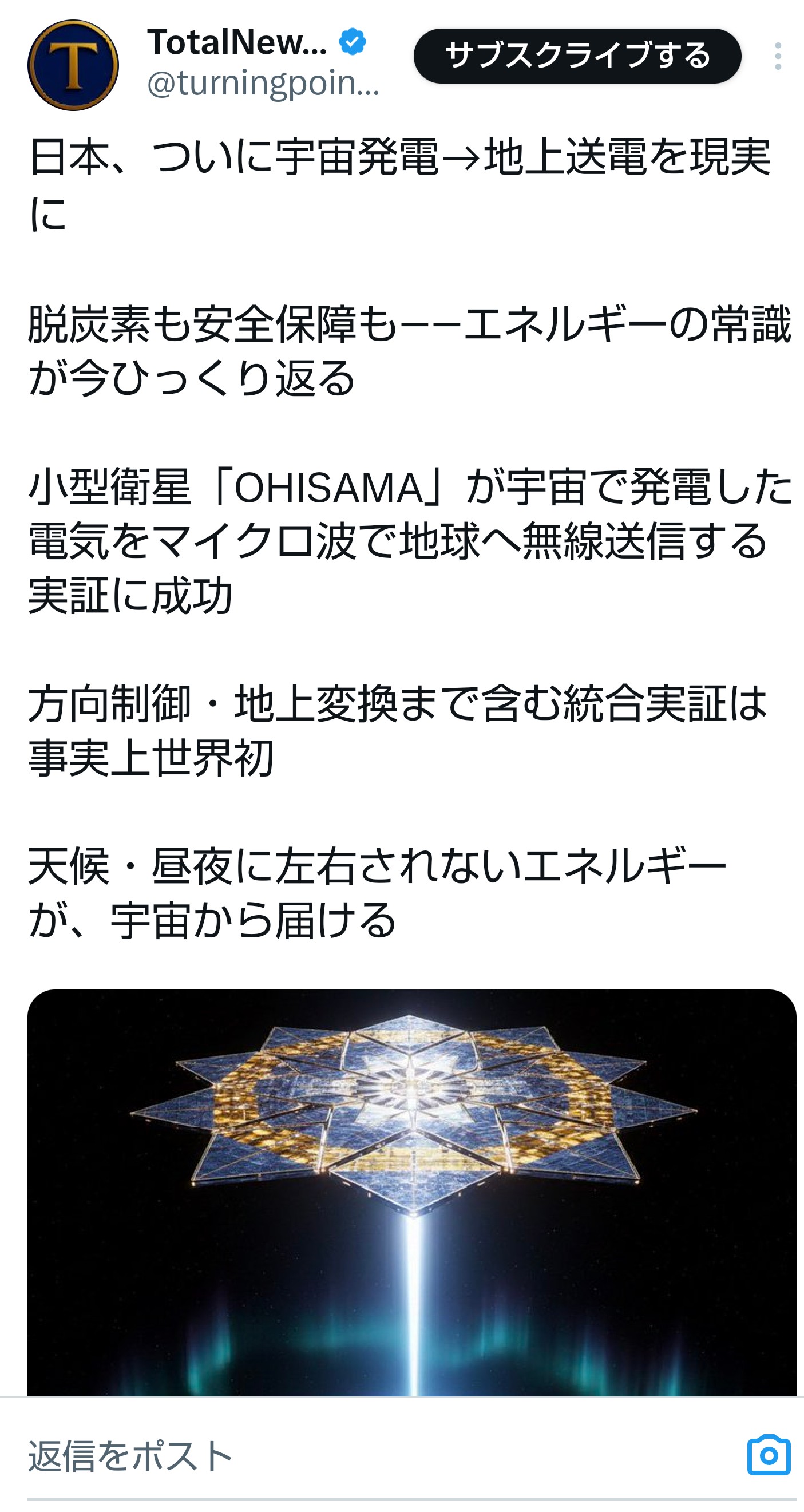 | … | 41無念Nameとしあき26/01/18(日)10:26:55No.1380964749+ 1768699615004.jpg-(434290 B) その頃日本は世界初の宇宙発電技術を成功させていた |