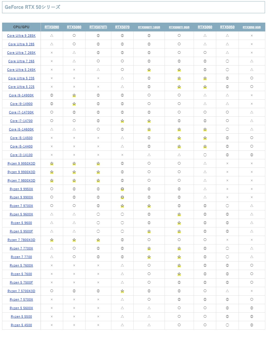 | … | 77無念Nameとしあき26/01/18(日)19:51:20No.1381107818そうだねx3FHDで高フレームレート狙うのかWQHD以上の画質重視なのかでボトルネックどっちかなんか変わるから意味ないよそんな一つの表だけ見ても |