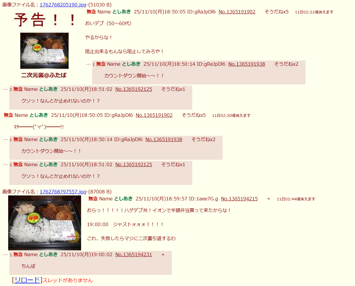 | … | 22無念Nameとしあき26/01/18(日)19:04:22No.1381093237そうだねx2>今日の弁当じゃないから永久追放な |