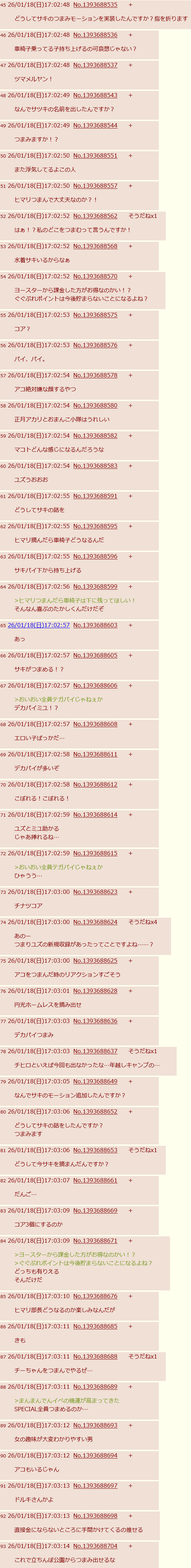 | … | 6無念Nameとしあき26/01/18(日)20:13:26No.1381115280+2日目どうだった? |