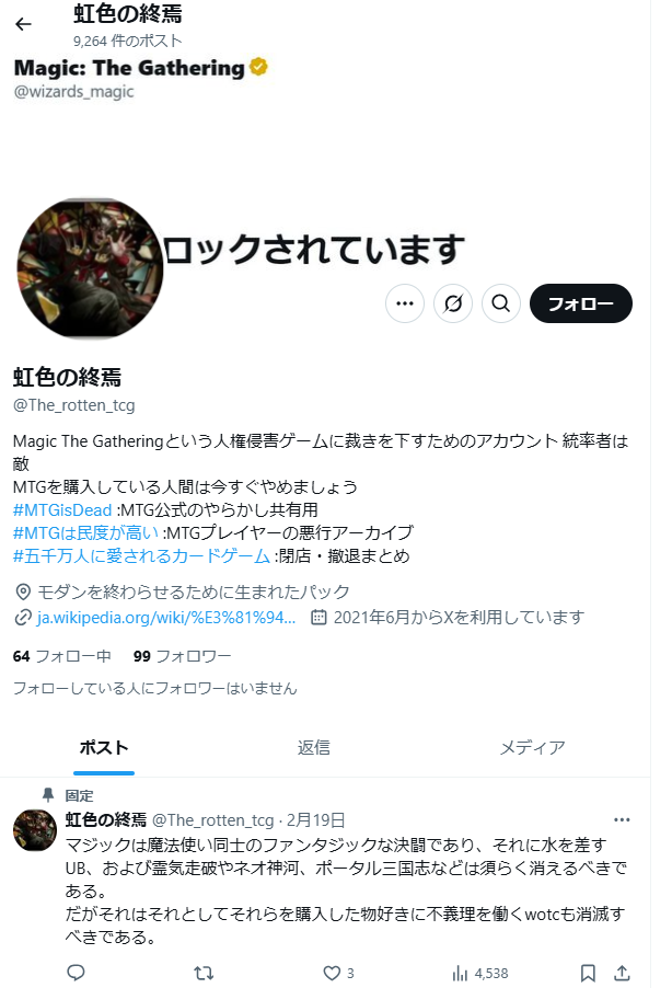 | … | 510無念Nameとしあき26/01/18(日)23:45:07No.1381180584+ミラディン神河期の衰退は原因があまりにも分かりやすすぎたからな |