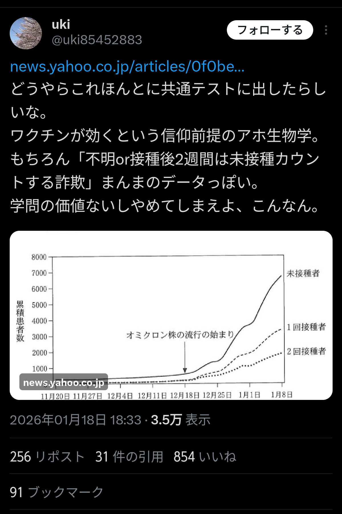 | … | 8無念Nameとしあき26/01/19(月)04:16:54No.1381207031+ 1768763814651.png-(372580 B) ワクチンが効いたということを示す反ワク黙らせる問題が出た!!! |