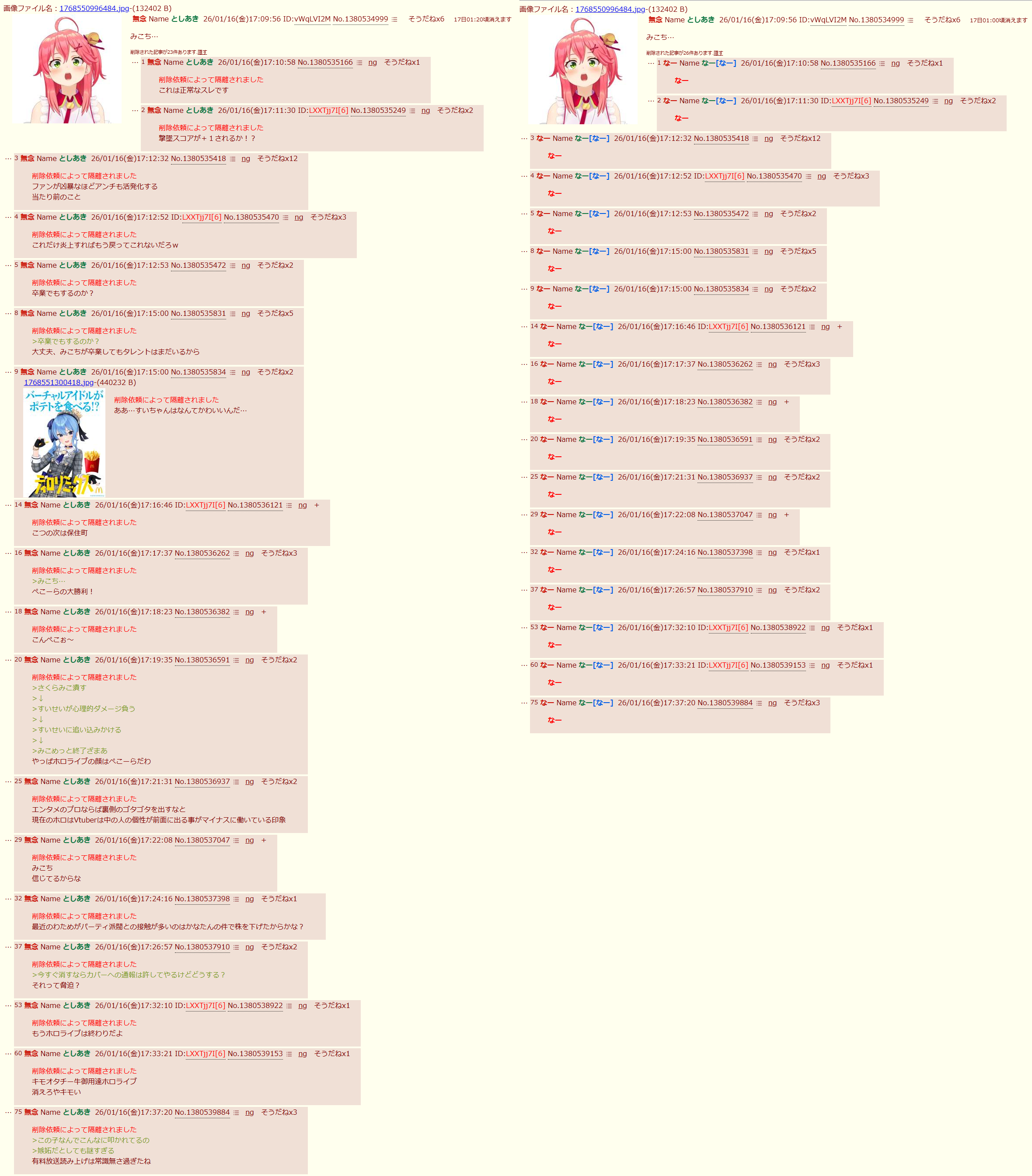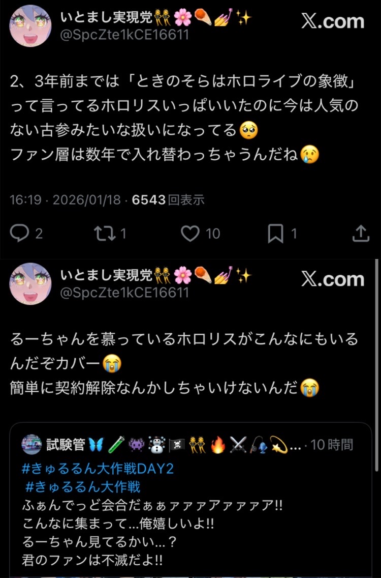 | … | 26無念Nameとしあき26/01/19(月)01:01:23No.1381195381+ 1768752083285.jpg-(2732918 B) ホロのアンチはネトウヨが嫌いらしい |