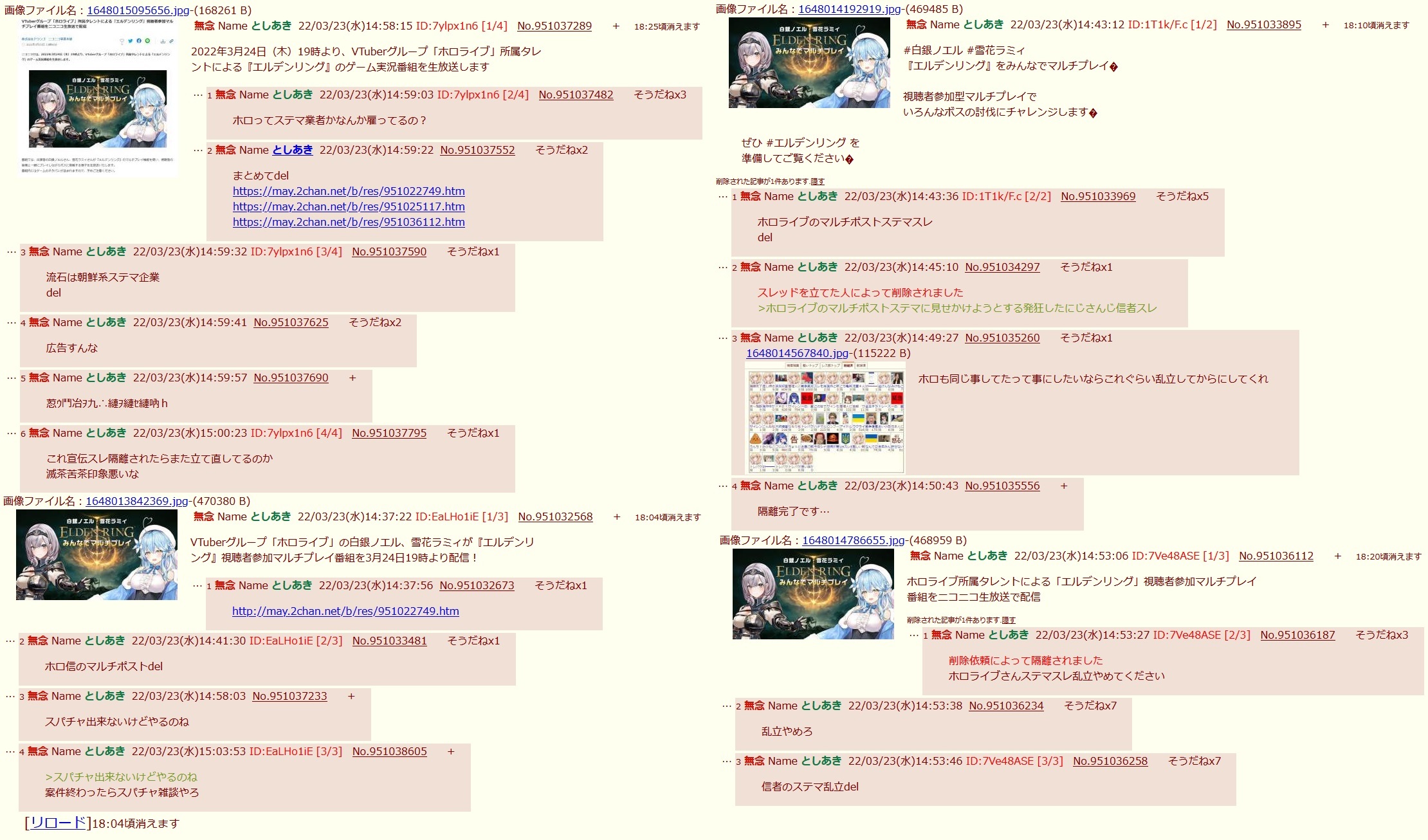 | … | 78無念Nameとしあき26/01/19(月)01:26:31No.1381198348そうだねx15ホロリスが荒らしてるってヤツの証拠は全然出ないけどにじリスの証拠は山ほど出てくるね |